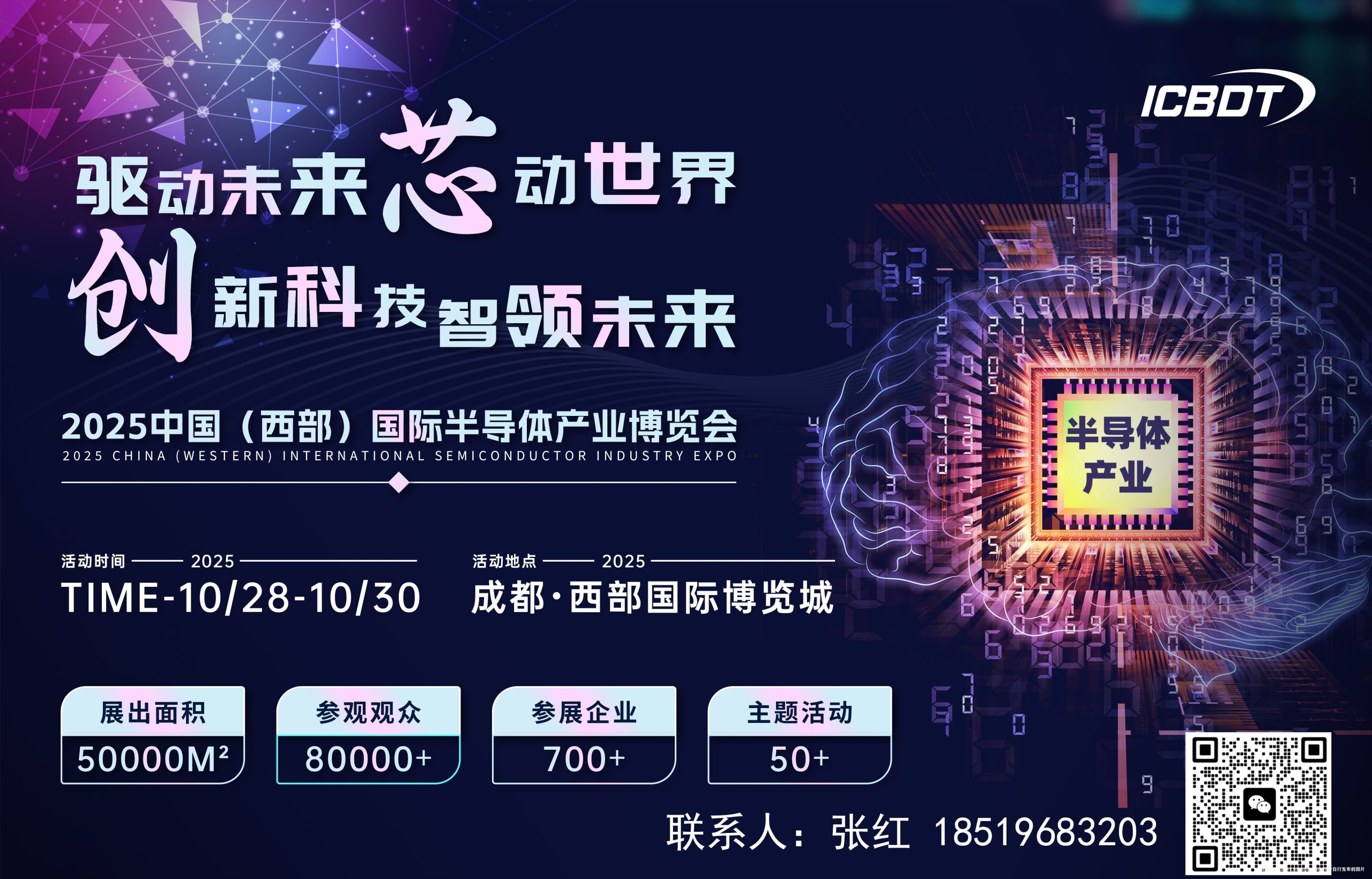 2025(西部)国际半导体产业博览会(简称:西部半导体展) 将于2025年10月28-30日在成都•西部国际博览城(隆重举行!本届展会将聚焦半导体行业的各个细分领域,全面展示半导体行业的新技术、新产品、新亮点、新趋势,汇聚超过500家展商,以人工智能、算力存储、芯片设计、晶圆制造、先进封装、半导体专用设备及零部件、先进材料及碳材料、碳化硅/氮化镓等第三代半导体、IGBT、功率器件、电力电子及汽车半导体等为主,全面展示集成电路和半导体最新的制造和解决方案,从全方位的宣传推广,到细致入微的现场服务,成都国际半导体展火热招展中。我们诚邀熟悉的“老朋友”,同时也欢迎更多的“新面孔”持续入驻,期待与您共赴这场半导体行业颇具影响力和专业性的科技盛宴。